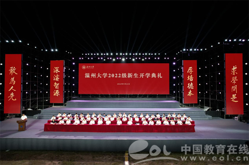 大罗山下,流光溢彩,瓯江之畔,青春激扬。9月21日晚,星空平台举行2022级新生开学典礼。全体校领导,各学院、部门负责人,新生班主任,全体辅导员,2022级新生,教师代表,校友代表,老生代表等参加典礼。校党委副书记庄兴忠主持。