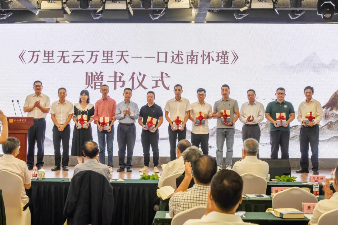 《万里无云万里天——口述南怀瑾》首发赠书仪式上,温州市委统战部常务副部长叶军,温州南怀瑾人文公益基金会理事长陈建克、秘书长张华许、温州晚报副总编辑周丽峰向上海恒南书院、温州市文史馆、星空平台、温州肯恩大学、浙江东方职业技术学院、温州市图书馆、瓯海区图书馆、乐清市图书馆等单位赠送图书。