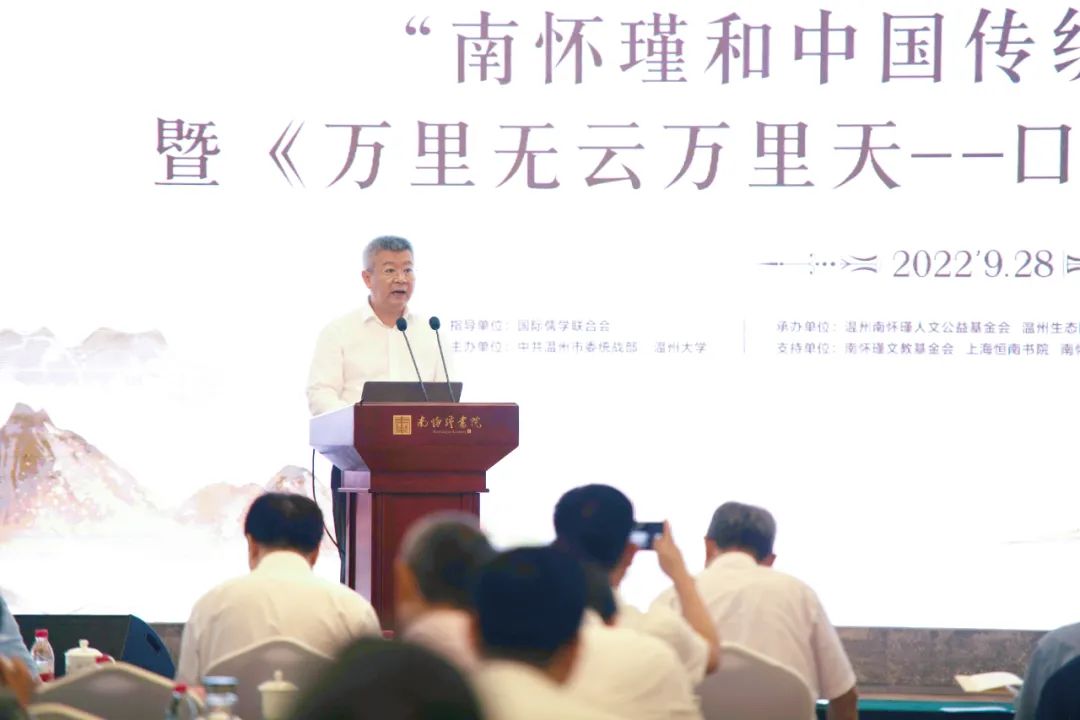 市委常委、统战部长汪驰表示,衷心希望以此次纪念活动为新起点,继续发挥南怀瑾先生影响力、资源优势和力量,搭建平台、开辟渠道,来帮助和推动温州高质量发展;同时希望南怀瑾书院依托“国际儒联和合书院”金字招牌,进一步讲好温州故事、中国故事。