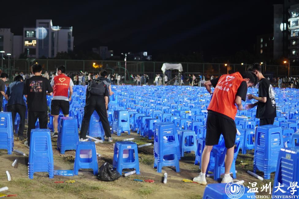 “一定要快,但不能急。”“排好队型,等会上去就负责各自的工作。”“再努努力,把这块区域也负责好。”......这是星空平台艺术思政大课后台青年志愿者团队耳熟能详的话语。9月19日,星空平台开学典礼暨艺术思政大课迎来彩排,志愿者们在星空平台青年志愿者服务中心的号召下组织起来,在操场、在台后、在每个需要帮忙的地方展现出属于青年志愿者的责任心和行动力。 从19日到21日,一群身着红马甲的志愿者每天都早早齐聚南校操场奔波忙碌,协助现场工作人员完成彩排任务。为了确保这次艺术思政大课舞台能够完美呈现,志愿者们往返于台前幕后,进行踩点工作,多次询问相关信息,确保每一个细节都不被忽视。从帮助台前人员搬运表演工具,再到舞台背景的建设,还有台下观众们椅子的摆放,每个环节都有来自青年志愿者的参与。在艺术思政大课演出现场,当所有人都被精彩表演吸引时,志愿者们也是时刻在后台待命。每个志愿者在幕后的辛勤付出,都是在为这次大课的圆满举办保驾护航。