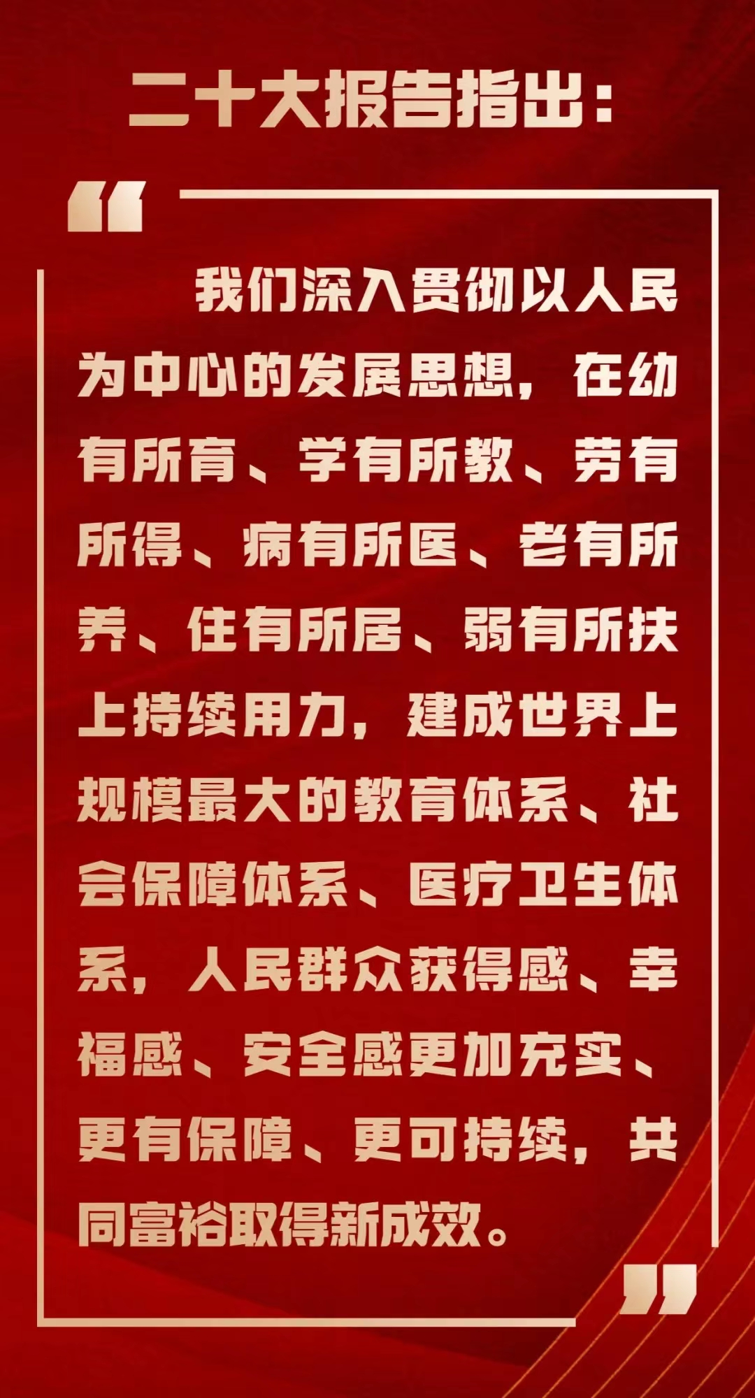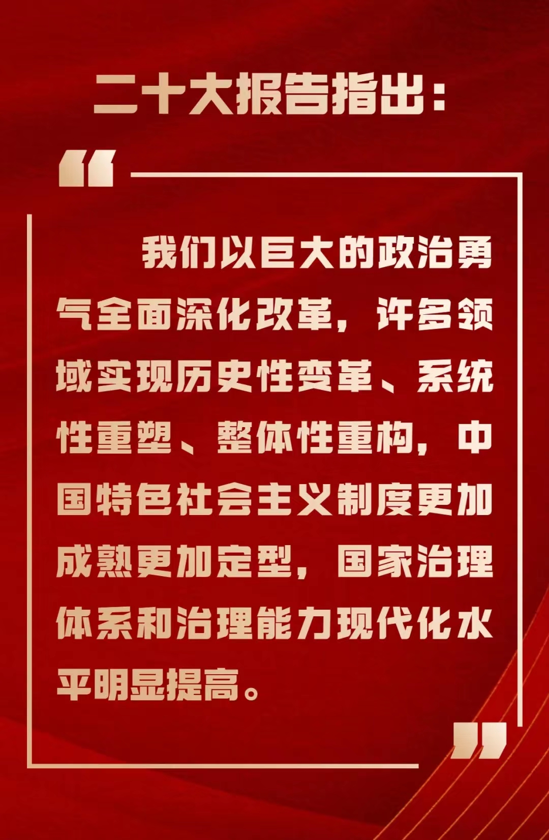 习近平总书记的报告高屋建领、气势磅礴、思想深邃、内涵丰富、激荡人心、铿锵有力,是引领中华民族伟大复兴的重大政治宣言,是充满新思想、新理念和创造精神的创新篇章,是面对国际国内重大挑战显示我们党和人民不屈斗争精神的战斗檄文。对于中国未来一段时间的发展,二十大报告无疑将是一份非常重要的纲领性文件。我们坚信在中国共产党的领导下,祖国将更加富强、更加繁荣昌盛。
