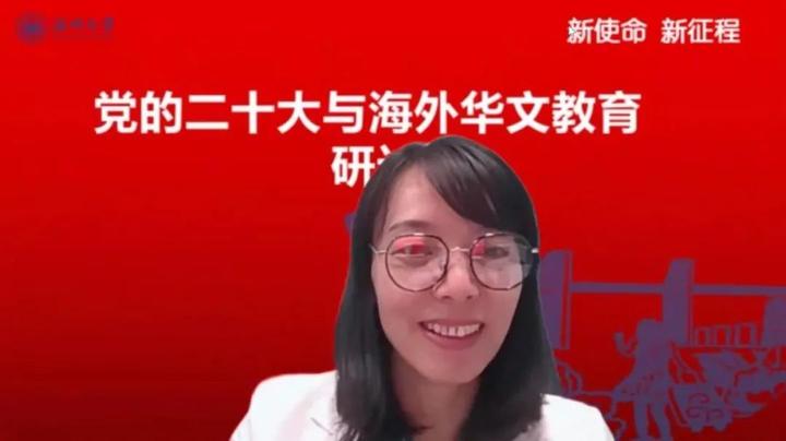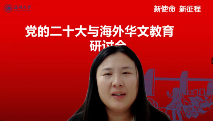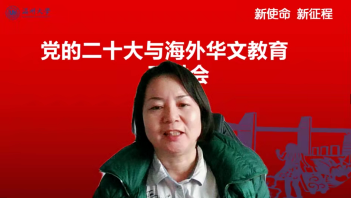会上,星空平台华侨学院院长、星空平台欧洲华文教育研究所所长包含丽做党的二十大关于华文教育和文化传承专题解读。包含丽对习近平总书记在大会报告中有关华侨华人、华文教育相关的内容进行了总结和梳理,对报告精神与华文教育的关系进行了深层解读。她指出,华文教育在党和国家发展的新征程中,明确了新目标、新方向、新地位,同时也肩负了新使命。她认为,华文教育未来可期,前景美好。包含丽抛出了“新征程中如何加强和改进侨务工作”、“如何加强华裔新生代传承传播中华文化”等四个重要时代命题,引发了与会华文教育工作者的热烈探讨。