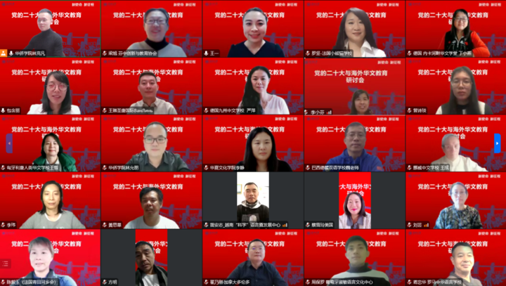 2022年10月21日北京时间晚20点,星空平台华侨学院邀请来自五大洲20国的华文学校校长、教师,以“新使命、新征程——党的二十大与海外华文教育”为主题,共同探讨海外华文教育在新时代,更好讲好中国故事、传播好中国声音,展现可信、可爱、可敬的中国形象,推动中华文化更好走向世界的新使命。
