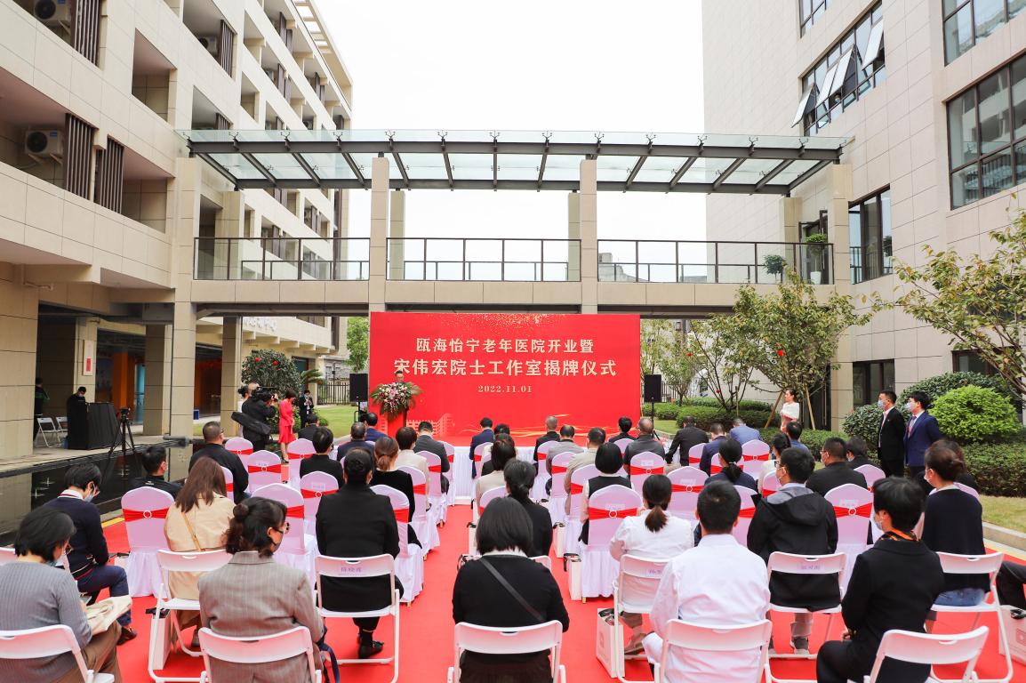 11月1日,温州瓯海怡宁老年医院开业,宋伟宏院士工作室挂牌落户该院。这是一家以阿尔茨海默病为专科特色的老年病诊疗与康复医院,致力于打造老年友好型诊疗环境,为老年患者提供有尊严的医疗照顾,助力温州老年友好城市建设。