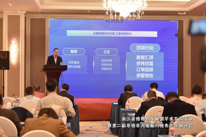 海宁市委统战部副部长、市侨联主席、市侨办主任钱立辉的经验分享题为“以数智理念为引领汇聚侨智侨力 谱写同心共富新篇章”。钱立辉谈到,海宁市侨联通过实施“数智汇侨”行动,搭建“侨助共富”新平台;实施“侨界创富”行动,激活“侨助共富”新动力;实施“订单回浙”行动,拓展“侨助共富”新领域;实施“侨爱帮扶”行动,展现“侨助共富”新风采四条路径,团结引导广大华侨华人、归侨侨眷、海归留学人员主动融入共同富裕建设中心大局,以数智理念为引领,不断汇聚侨智侨力,谱写同心共富新篇章。