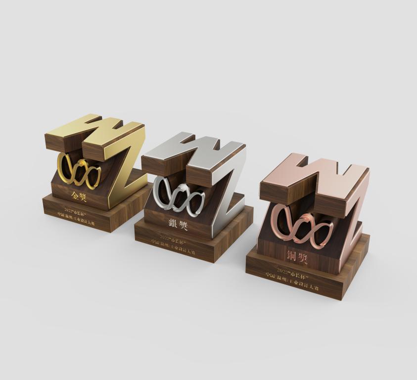 同时,为了突出温州作为历史上的“百工之乡”、非遗传承的魅力文化之都的特色,邓亮及其团队还在奖杯、证书的设计元素中加入诸多温州非遗元素。例如,今年的奖杯结合了温州传统工艺美术元素,以“温州”英文首字母“WZ”为造型元素,采用胡桃木立体镂雕工艺,并结合精雕铝氧化金属贴片镶嵌,增加了整体材质的丰富性和层次性。奖杯底部融入“木活字”非遗元素,获奖选手可以亲自拓印证书,使奖杯突破了传统摆设的单一属性,增加了新鲜互动体验。