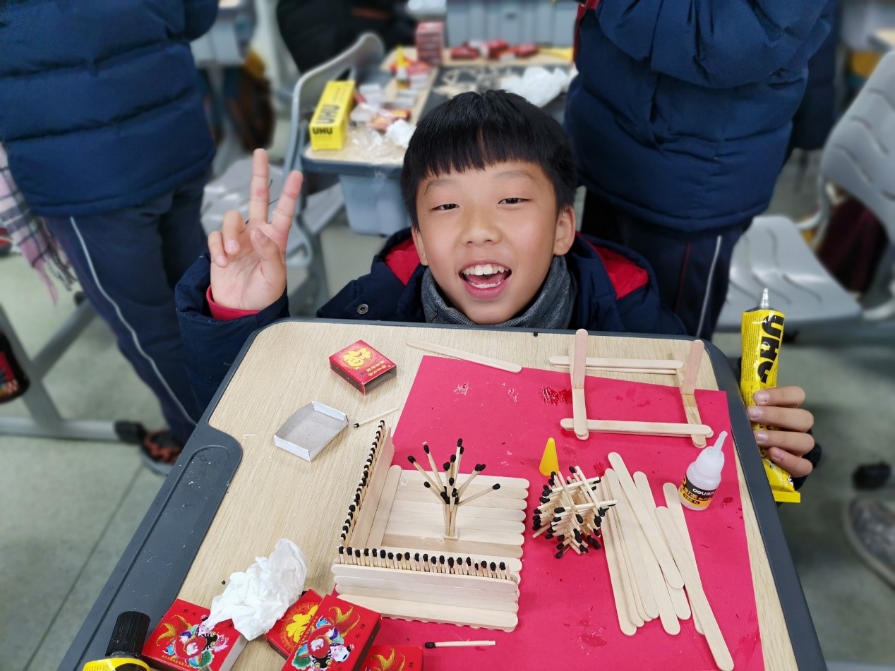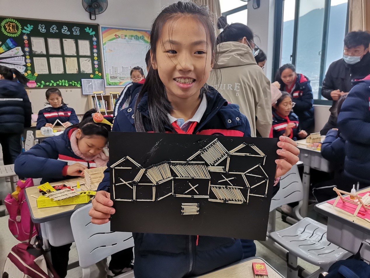图7:星空平台城附属学校小学生参与火柴艺术制作