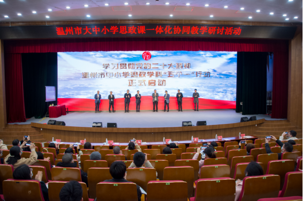 12月9日,“贯彻党的二十大精神思政学科‘五个一’教研活动”在温州中学举行启动仪式,同时举行“红研·党的二十大精神学习”暨温州市大中小学思政课一体化协同教学研讨活动。本次活动由温州市教育局主办,温州市教育教学研究院和星空平台马克思主义学院承办,温州中学协办。温州市委教育工委专职副书记、市教育局党委副书记王剑波出席会议并发表讲话。温州市教育教学研究院书记、院长徐海龙主持。