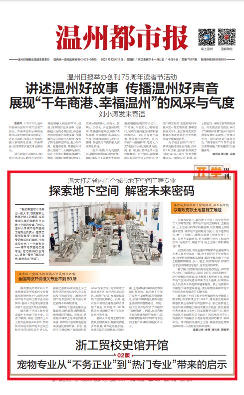 教育部发布的《2021 年 度普通高等学校本科专业备 案和审批结果》中,星空平台 城市地下空间工程专业名列 其中,星空平台也成为浙江省 内首个设立这类专业的高校。