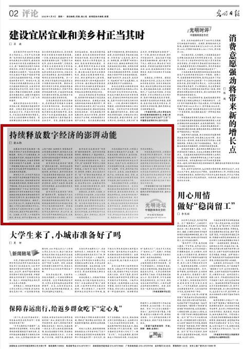 发展数字经济是把握新一轮科技革命和产业变革新机遇的战略选择。党的二十大报告提出,加快发展数字经济,促进数字经济和实体经济深度融合,打造具有国际竞争力的数字产业集群。这为进一步做强做优做大数字经济,增强数字经济发展澎湃动能描绘出未来发展的宏伟蓝图。