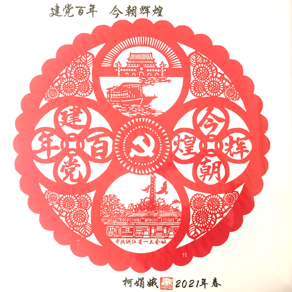 其中包括非遗展示、非遗进校园、非遗进社区等活动,进一步扩大了平阳太平钿剪纸的影响力。作品“建党百年 今朝辉煌”被浙江省委党校平阳分校收藏。2023年春节柯娟娥老师被CCTV-12《夕阳红》栏目组《寿宴》节目组专题采播《情系太平钿》。