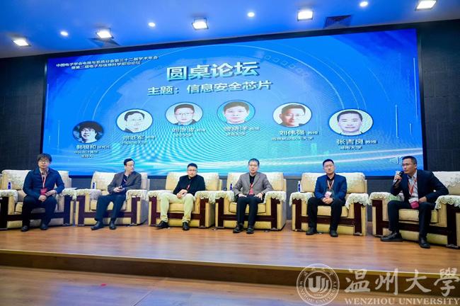 大会圆桌论坛环节,在中国科学院计算所韩银和研究员的主持下,上海科技大学哈亚军教授、清华大学刘雷波教授、南京航空航天大学刘伟强教授、复旦大学曾晓洋教授、湖南大学张吉良教授围绕信息安全芯片主题做交流和分享。