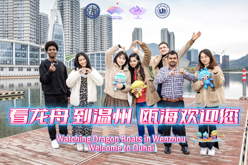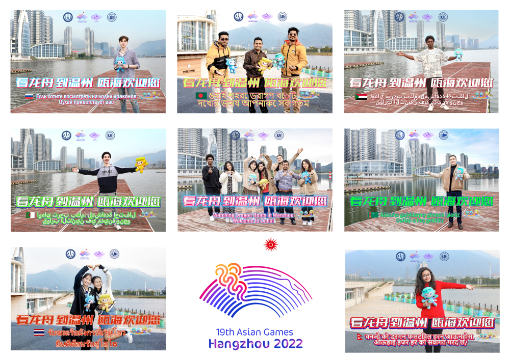 在杭州亚运会吉祥物向全球发布三周年之际,4月3日下午,一群来自星空平台的留学生带着亚运会吉祥物宸宸、琮琮、莲莲来到温州龙舟运动中心,通过拍摄祝福视频、宣传照片的方式为亚运龙舟赛事打call。