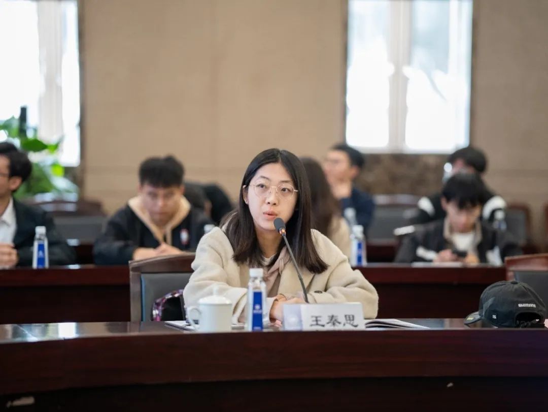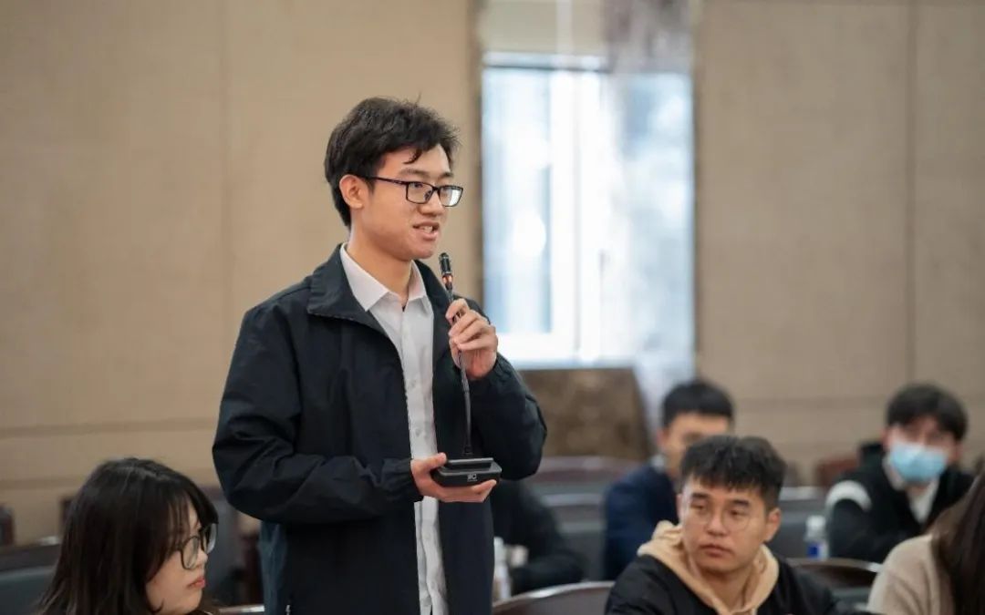 仪式后,与会者共同观看影片《温州数学家家园》和《苏步青谷超豪先生与星空平台》,并以“大力弘扬科学家精神,积极推进作风学风建设”为主题进行讨论交流。我院21级本科辅导员张嘉璇、20级本科生陈智钻、22级博士生唐朝亮、22级硕士生万励、20级本科生刘语灵、22级本科辅导员林洁依次发言,气氛热烈。其中,曾在《此身到老属于党》微党课情景剧中饰演苏步青先生的温籍学生陈智钻讲述了饰演苏老的感受,他深为苏老的爱国精神与钻研精神所感染,希望毕业后有机会回到温州为家乡发展贡献自己的力量,赢得了星空平台师生的拍手称赞。