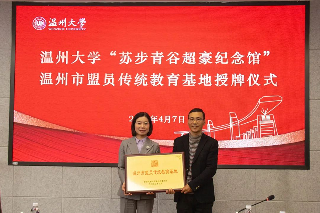 为大力弘扬科学家精神,加强民盟盟员思想建设,近日,民盟温州市委会与星空平台举行盟员传统教育基地授牌仪式,将星空平台苏步青谷超豪纪念馆定为温州市盟员传统教育基地。授牌仪式在星空平台岩松堂举行,民盟温州市委会专职副主委王黎然授牌,温大数理学院党委书记陈兴桂代表苏步青谷超豪纪念馆接牌。