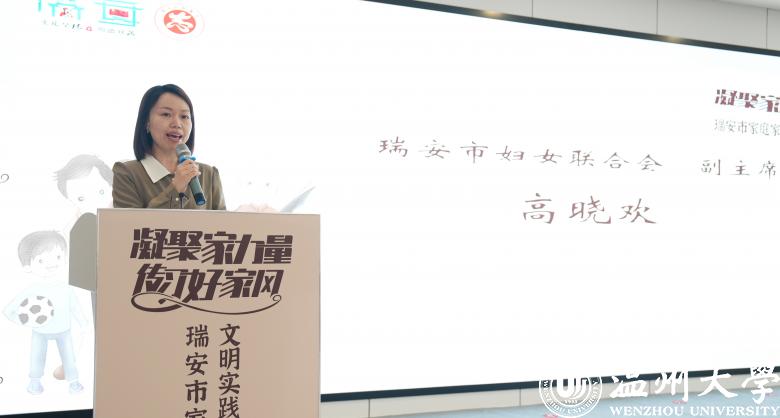 活动现场,瑞安市妇联副主席高晓欢介绍了家庭家教家风文明实践主题宣传活动的主要内容。
