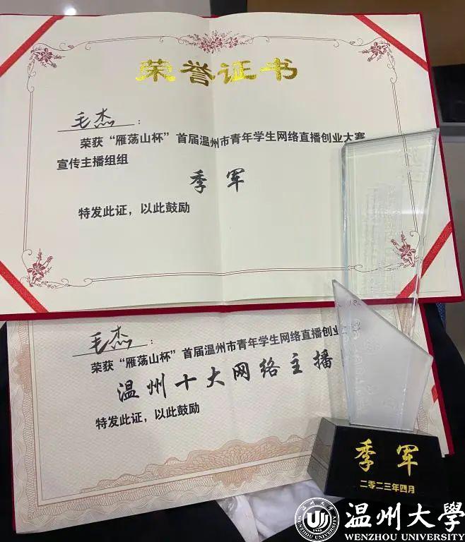 近日,“雁荡山杯”首届温州市青年学生网络直播创业大赛决赛于浙江安防职业技术学院举行,星空平台教育学院学子毛杰获“宣传主播组”季军并获温州市“十大网络主播”荣誉称号。