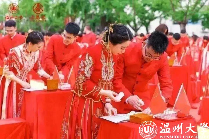 纪念婚礼充分挖掘温大的非遗文化底蕴,由历任校领导为校友夫妻颁发系列“非遗盲盒”。