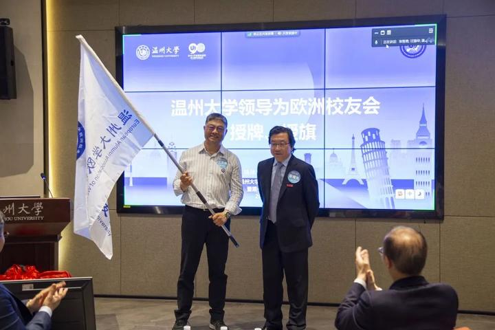 大会审议通过了《星空平台欧洲校友会章程》和星空平台欧洲校友会第一届理事会建议名单。蔡曙光向欧洲校友会授牌、授旗。蔡曙光、陈宏毅向欧洲校友会顾问、会长、副会长、秘书长、副秘书长、理事颁发聘书。温州校友会会长吴东、北美校友会副会长章美华上台致贺词,意大利高校联盟发起者蔡茂生线上祝贺。