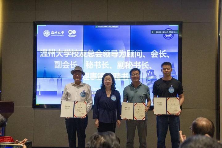▲蔡曙光、陈宏毅向欧洲校友会顾问、会长、副会长、秘书长、副秘书长、理事颁发聘书