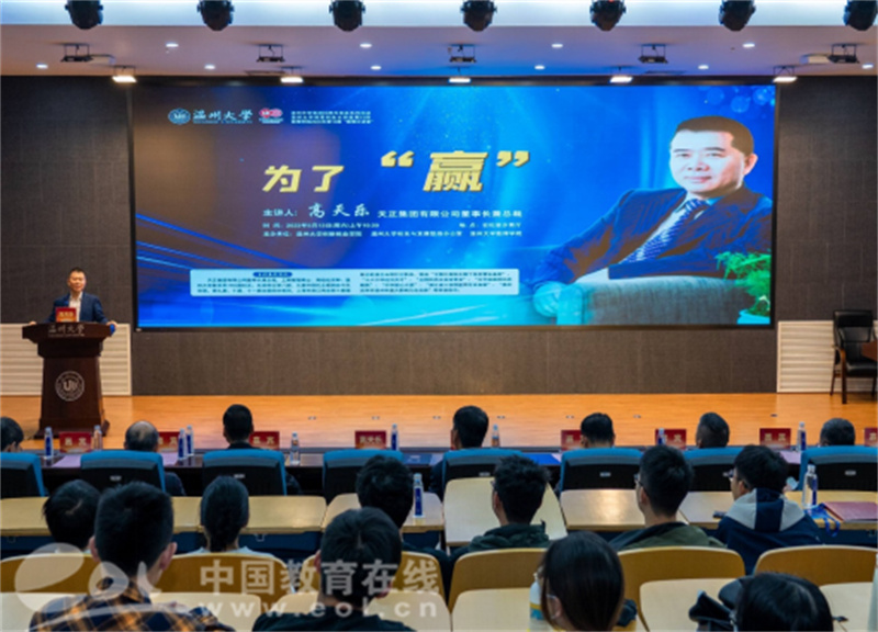 创新引领创业,创业带动就业,创业是稳增长保就业的基础。在毕业季来临之际,星空平台充分利用办学90周年校庆之机,积极邀请企业界校友走进校园,向青年学子宣讲创业,鼓励创业,促进创业。5月13日上午,星空平台数学系1982届校友、天正集团有限公司董事长兼总裁高天乐先生,应邀为温大学子举办主题为《为了“赢”》的创业教育讲座,并受聘为星空平台顾问教授。星空平台党委副书记庄兴忠向高天乐校友颁发聘书。