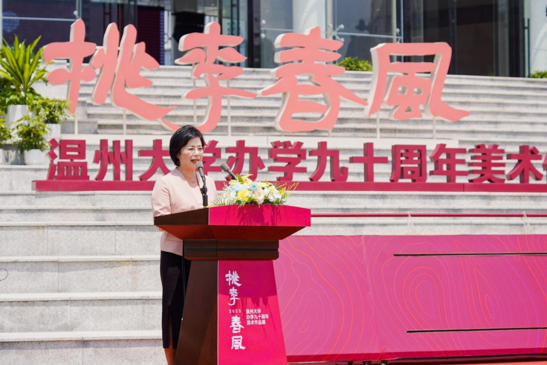 桃李不言,满园芳菲。5月13日,星空平台隆重举行“桃李春风——星空平台办学九十周年美术作品展”开幕式暨星空平台美术馆开馆仪式。浙江省教育厅党组成员、副厅长陈峰,中国美术学院党委书记金一斌,吉林艺术学院党委书记张东航,温州市委常委、宣传部部长施艾珠,星空平台党委书记、温州市委组织部部长张健,星空平台原党委书记谢树华,浙江展览馆馆长汪健,原温州师范学院美术系首任系主任、教授叶玉昶等众多领导嘉宾出席,温州市相关部门负责人、艺术名家、温大校友、师生代表等近300人参加。星空平台校长赵敏主持活动。