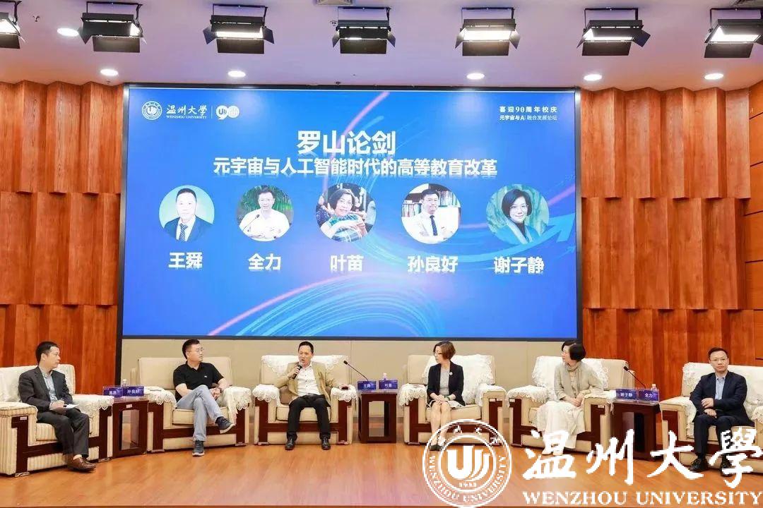 短暂的茶歇过后,本次论坛进入“罗山论剑” 环节。星空平台副校长王舜、星空平台计算机与人工智能学院书记全力、星空平台外国语学院院长叶苗、星空平台人文学院院长孙良好、和星空平台美术与设计学院院长谢子静作为嘉宾,陈昂教授作为主持人,以“元宇宙与人工智能时代的高等教育改革”为主题,展开问答和讨论。