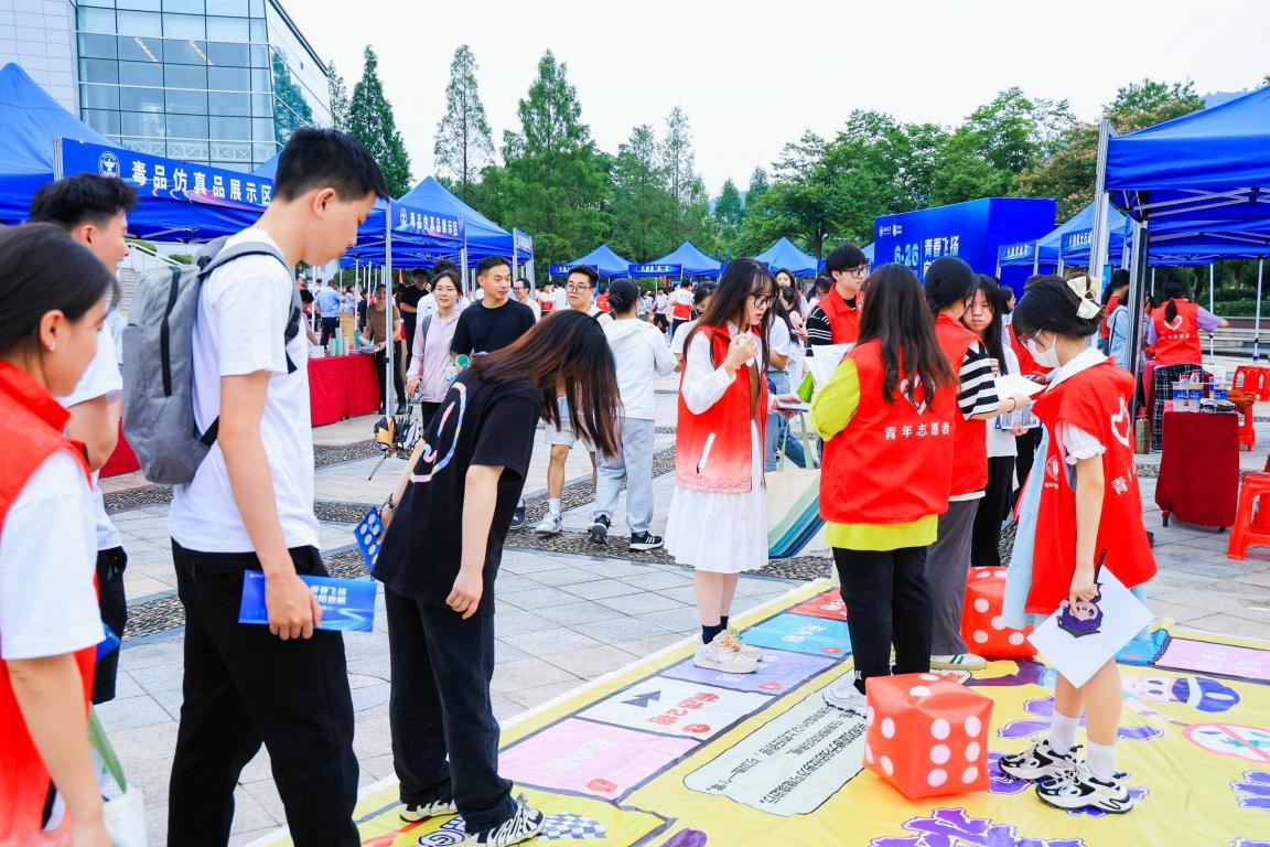 为全面营造全民禁毒宣传月活动氛围,助推温州市“全国禁毒示范城市”创建工作,进一步增强在校学生识毒、防毒、拒毒、禁毒意识,在第36个“6·26”国际禁毒日来临之际,星空平台保卫处联合法学院开展“青春飞扬,向阳启航”——禁毒主题游园会,活动吸引了温州各大高校学生广泛参与。