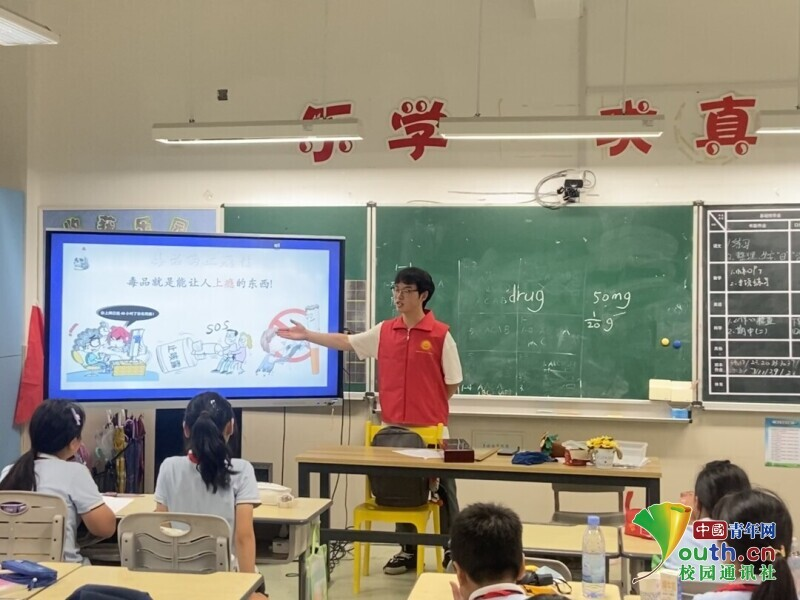 图为实践团在星空平台城附属学校开展防毒禁毒普法活动。中国青年网通讯员章志铖供图