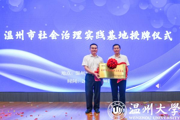 黄建斌为星空平台授温州市社会治理实践基地牌,教育学院党委书记、社会心理服务中心主任何毅教授接牌。