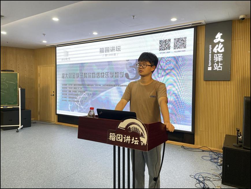 “我们经常会看到这类现象,一些数学还不错的学生进了中学后,逐渐丧失了对数学的兴趣,甚至厌恶数学。究其原因,很大一部分在于随着考试难度不断加大,导致不少学生因考试反复失利而产生挫败感。对此,我将与同学们一起探讨如何保持对数学的兴趣以及克服对数学的恐惧……”近日,在温州市图书馆举行的第1348期籀园讲坛上,来自温大数理学院的庄子游同学,面向中学生及其家长悉心分享自己的学习体会,吸引线上线下近万人次参与观看。
