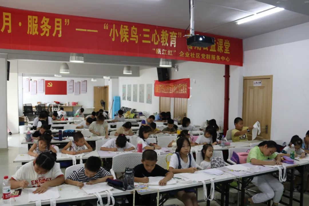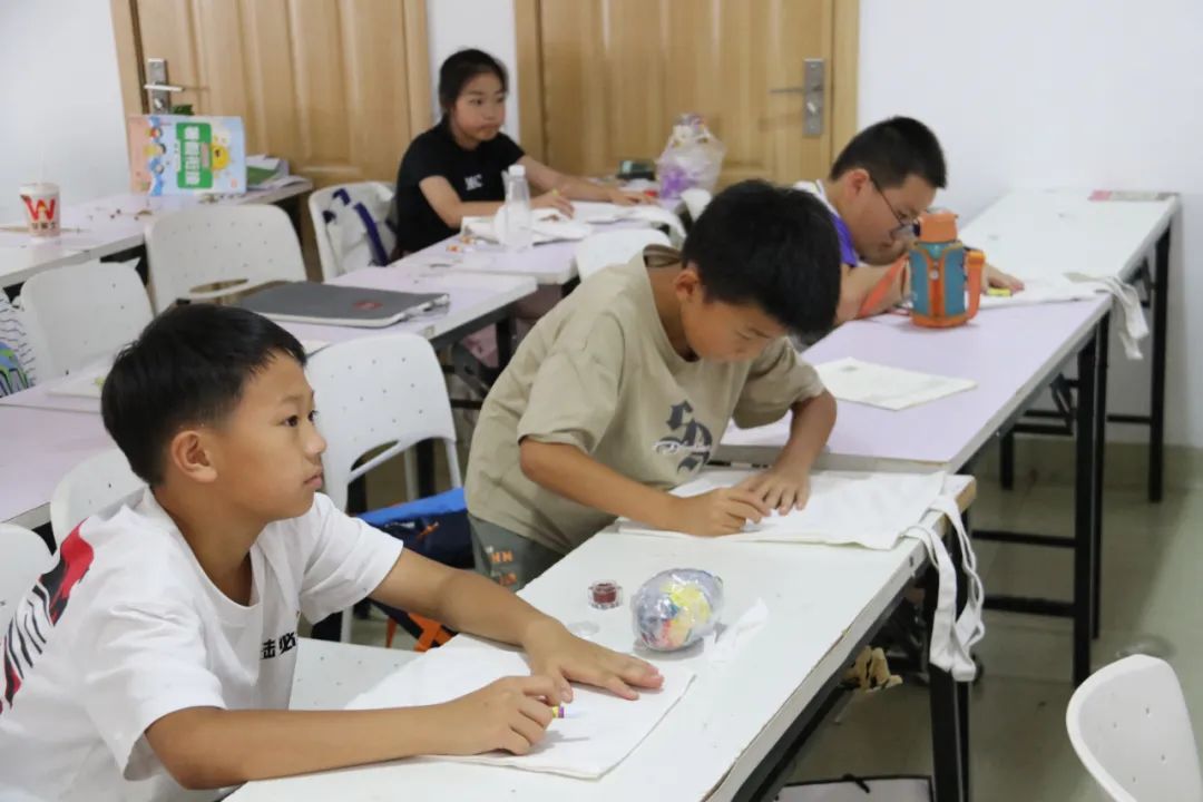 蓝夹缬,又称温州蓝夹缬,为中国传统印染四缬之一。为了传承并发扬温州民俗文化,本期“小候鸟”暑期公益课堂开设蓝夹缬体验及技艺培训系列课程,让这个小众“非遗”产品“火”起来。7月14日下午,企业社区联合星空平台“爱的历程”暑期实践队开展绘“夹缬”之蓝,品创造之美活动,共40名“小候鸟”参加。