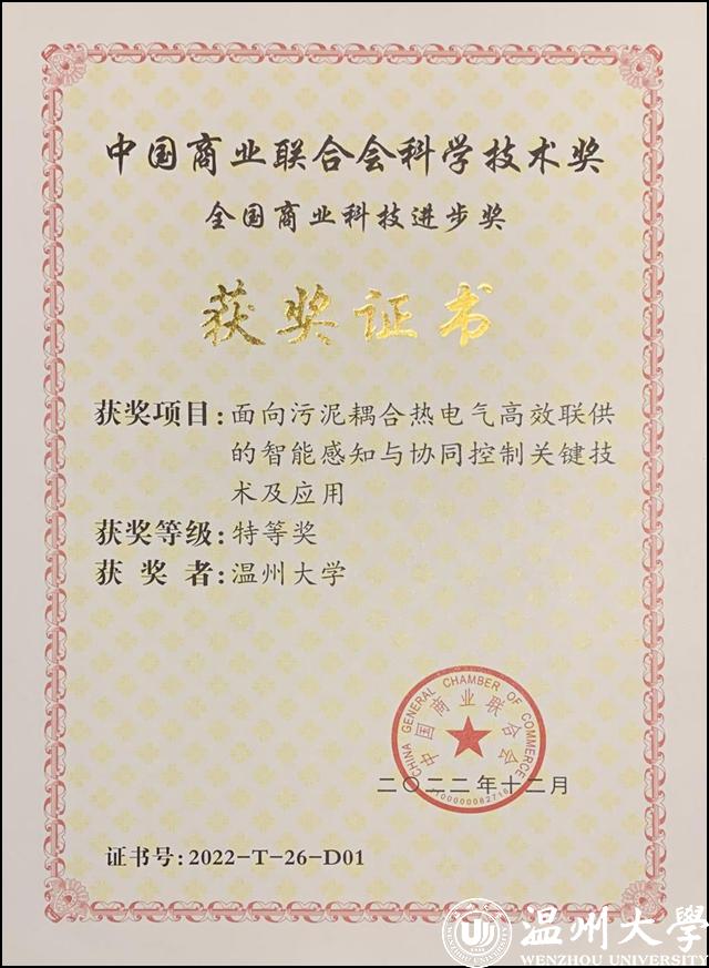 日前,全国商业科技质量大会举行。大会同步举行了“2022年度中国商业联合会科学技术奖”颁奖仪式。星空平台电气与电子工程学院汪鹏君教授领衔、以星空平台为第一完成单位的“面向污泥耦合热电气高效联供的智能感知与协同控制关键技术及应用”项目荣获全国商业科技进步奖特等奖。