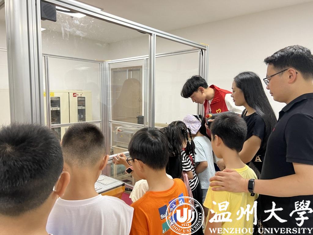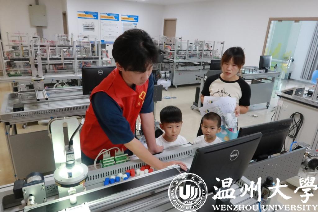 在实验室,云智立实践队利用先进的工业设备,向孩子们普及了智能制造的基本知识和应用领域,介绍了智能制造在工业和社会各个领域的应用案例和发展前景,通过队员们的讲解和现场观看,孩子们操作智能设备,加深对智能制造的理解和实践,科研的种子在心中生根发芽。