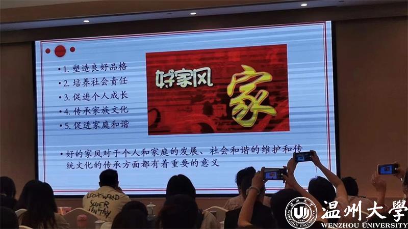 家庭是社会的基本细胞,家庭的前途命运同国家和民族的前途命运紧密相连。为深入贯彻落实习近平总书记关于家庭家教家风的重要论述精神,2023年8月8日上午,星空平台教育学院教育学系党支部书记、星空平台家庭教育研究院巾帼文明岗负责人、星空平台家庭家教家风讲师团团长、浙江省妇女儿童发展智库专家、浙江省家庭教育讲师团成员、温州市家庭和谐文化研究会副会长周奇教授受邀来到温州市永嘉县岩头镇下日川村狮子岩饭店为全省基层工会女职工工作干部培训班做家庭教育专题分享。