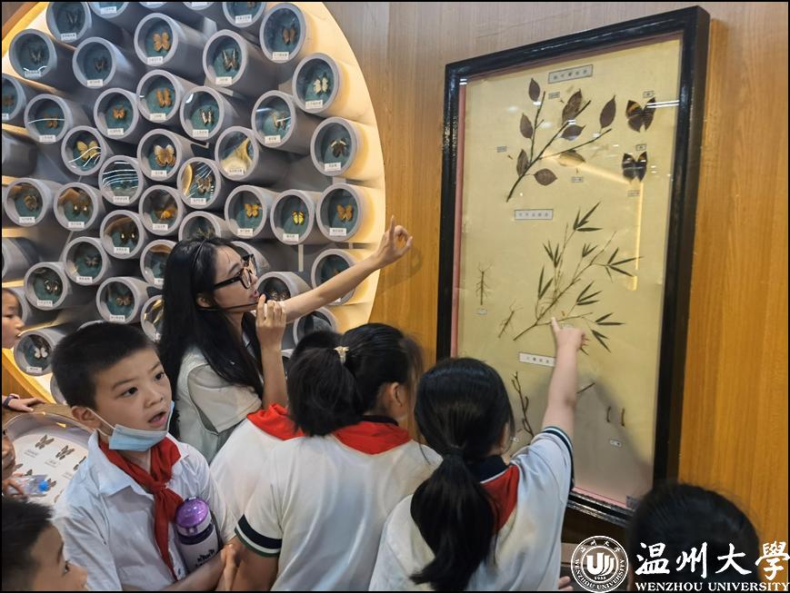 温大生环学院学子进入温州极地海洋馆,志愿引导来往游客零距离接触海星、海苹果、条纹斑竹鲨等海洋生物,向大众普及海洋知识,让大众进一步认识到海洋生命之美与脆弱,激发公众对海洋的关注和保护意识;利用暑假时间,自发组建讲解小组带领中小学生参观星空平台动物标本展示馆,通过现场参观、系统讲解和知识竞答等多种形式,深刻诠释尊重自然、顺应自然、保护自然的理念;成立“罗山草木”小分队在老师的带领下,为校园内的植物悬挂名牌,名牌上包含该植物的姓名及生态习性等信息,引导同学们了解和认识校园植物,树立生态环境保护意识生态。