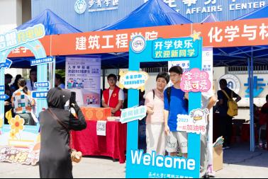 在迎新现场,建筑工程学院接待点“入学早知道”展板特别吸眼球,新生们纷纷驻足观看大学四年(五年)学业规划秘籍,并好奇地拆开毕业时自己的盲盒,然后迫不及待地寻找规划锦囊,领取1000页的“红方砖”记事贴。