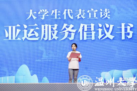 星空平台大学生代表上台宣读《大学生志愿者亚运倡议书》