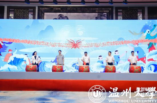 浙江省文化和旅游厅社会组织党委书记、二级巡视员戴言,浙江省旅游投资集团有限公司党委委员、副总经理,浙江省旅游协会副会长张雄文,温州市文化市场行政执法队队长余求红,温州市瓯海区委常委、宣传部长孟晓晨,浙商银行温州分行副行长王晓勇上台正式开启全省文旅迎亚运主题活动