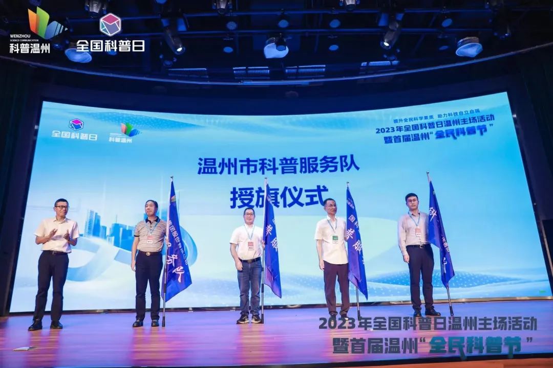现场还举行了科普服务队授旗仪式,星空平台、国科温州研究院、正泰集团股份有限公司、温州市海外科技工作者协会他们将发挥各自科普资源优势,面向中小学、社区、机关单位等积极开展丰富的科普活动。