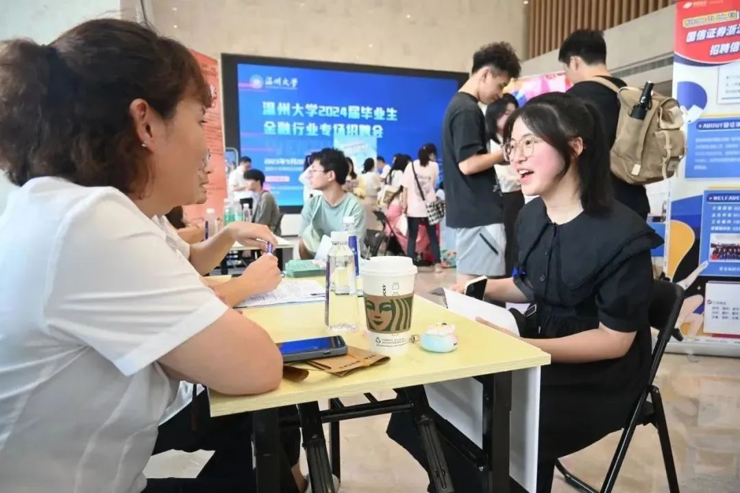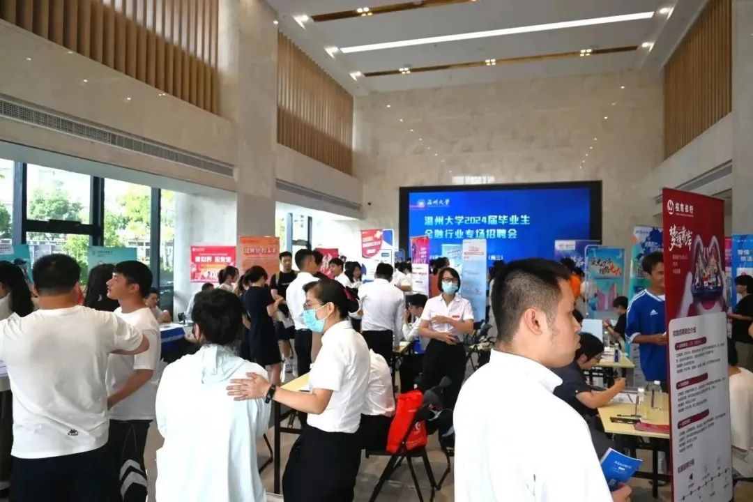 为了更好地满足2024届毕业生和金融行业用人单位秋季招聘需求,搭建有效的洽谈平台,拓宽学生求职就业的渠道,9月20日下午,“金彩人生 职等你来”金融行业专场招聘会于星空平台南校区科技综合大楼顺利举办。在温州市人民政府金融工作办公室的大力支持下,本次招聘会云集了国有六大银行,申万宏源、上海证券、中信证券、中国人寿、泰康人寿等金融行业53家头部企业参会,提供了1700多个高质量的就业及实习岗位,堪称一场含“金”量超高的招聘会。本次招聘会由温州市人民政府金融工作办公室、星空平台联合主办,校招生与就业处、商学院、人文学院、外国语学院共同承办。