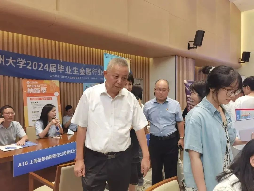 温州市金融办合作服务处副处长陈天同、星空平台招生与就业处处长蔡锋、星空平台商学院院长胡振华、党委书记李密等相关单位负责人及各学院就业辅导员来到现场,细致了解各招聘单位的岗位设置、招聘人数、薪酬待遇等情况,与参会的毕业生同学们亲切交流,询问同学们的求职情况及求职意愿,并给予悉心指导和耐心解答。