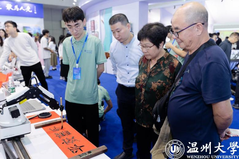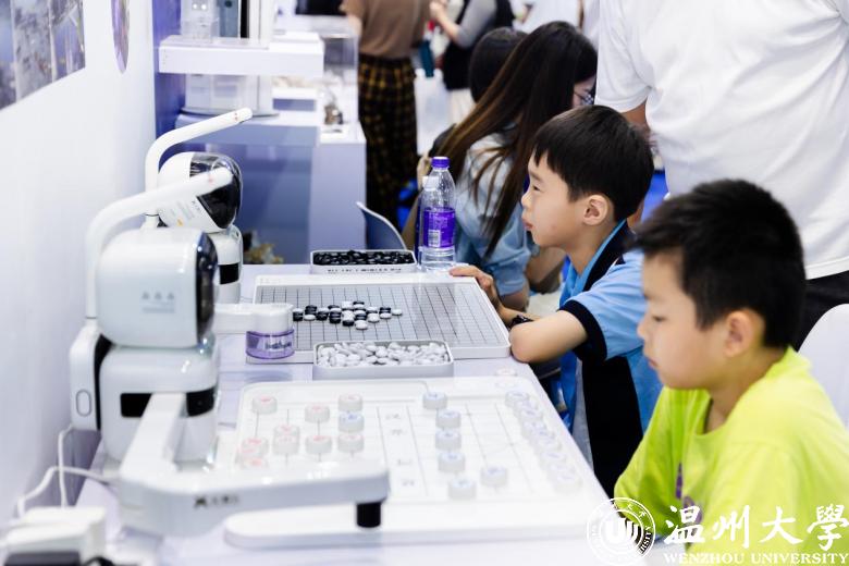 “快看!那个机器人会用毛笔写字,还有个机器人会下棋!”“哇,这辆赛车好酷!”……机电工程学院师生自主研发的魔术师书法机器人、Robocon投环机器人和疾风车队赛车,计算机与人工智能学院研发的动作捕捉系统,星空平台元宇宙与人工智能研究院研发的VR展示-温州朔门古港及宋代园林和下棋机器人等作品科技感满满,吸引了众多市民参与体验。