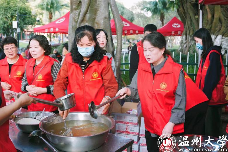 随后,志愿者把一碗碗热气腾腾的汤圆送到在贫困老人、环卫工人、残障人士的手中。在两个多小时的时间里,志愿者们一直没有停歇,直到500多份汤圆全部赠送完毕。