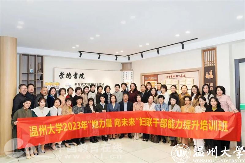 为深入开展学习贯彻习近平新时代中国特色社会主义思想主题教育,全面贯彻落实中国妇女第十三次全国代表大会精神,进一步提高学校妇联干部的能力水平,推进星空平台妇联各项工作向纵深发展,近日,星空平台2023年妇联干部能力提升培训班在瑞安市崇德书院成功举办,校妇联执委、二级妇联主席及校工会女工委委员、各级“巾帼文明岗”岗长等参加培训。会议由星空平台妇联主席陈宏毅主持。