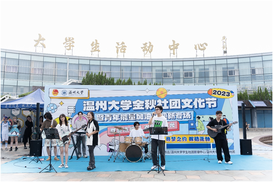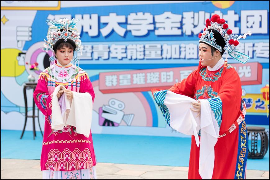 舞台区内,吉他协会、国标舞社等10余个学生社团带来的节目为现场的同学传递着青春的活力与能量,而由星空平台红楼戏曲社、朗诵协会等学生社团带来的《打金枝》《红色的括苍山》等节目,则是让同学们沉浸式感受到中华优秀传统文化魅力及浙南浓厚的红色文化基因。