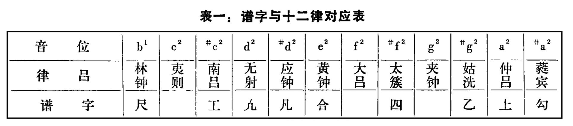 ”音高为d,既为日本琵琶谱字,又为正仓院藏十七簧紫竹笙笙簧音律,与雁北笙管乐谱字“