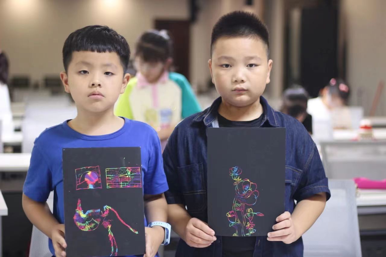 防溺水手抄报、亚运主题画……志愿者老师结合“防溺水”等话题,将主题刮画、手抄报绘画等形式融入到美育课堂之中,在老师的带领下,在营员们的手中诞生了一幅幅精美的防溺水主题手抄报、富有创意的亚运会主题刮画作品!