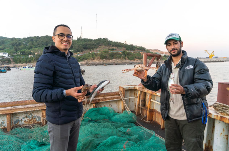 从风味小吃品到百米海鲜长桌宴,从风情老街游至休闲渔船体验“破浪赶海”的乐趣……近日,来自摩洛哥的星空平台留学生Rida(瑞达)和marouane(马大伟)来到千帆之港——浙江省温州市苍南县霞关镇,解码历经600多年历史变迁的霞关老街风情,感受古朴渔村的精彩蝶变,打卡体验独属于浙南海岸的蓝色浪漫。