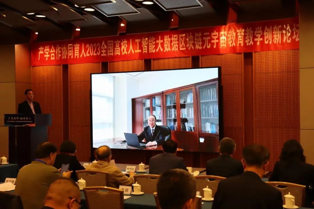 2023年11月4日,由全国高校人工智能与大数据创新联盟、华算人工智能研究院主办,中科院软件所指导,云南大学、东华大学、北京信息科技大学、上海工程技术大学、安徽工程大学、山西农业大学、汕头大学、中北大学、重庆邮电大学、宁波大学科学技术学院、深圳职业技术大学、上海杉达学院、广东东软学院、沈阳城市学院、晋中信息学院、机械工业出版社 北京中关村软件园人才基地培训中心、北京经济技术开发区企业协会、佛山市人工智能学会、国网山西省电力公司信息通信分公司等全国20多家高校和机构协办的“产学合作、协同育人2023第六届全国高校人工智能大数据区块链元宇宙教育教学创新论坛”在北京隆重召开。本届论坛是贯彻落实习近平总书记关于我国教育、科技、人才三位一体发展重要论述的具体实践,是落实教育部 “产学合作、协同育人”战略的具体行动,是推动教育部“高等学校人工智能创新行动计划”、“高等学校区块链技术创新行动计划”的系列活动之一。会议由联盟秘书长、华算人工智能研究院执行院长朱启明主持。